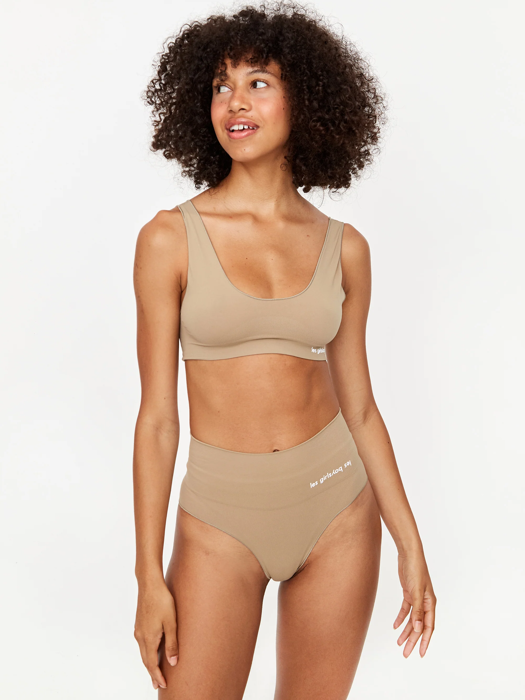 This Les Girls Les Boys crop top is crafted from slightly sheer, seamless fabric in the brand’s new coriander colourway. It has a simple, athletic-style cut, with a round neck and back and high-stretch underbust support.